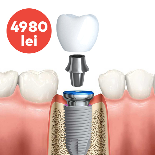 Pachetul include consultatia de specialitate, planul de tratament, implantul dentar Nobel Parallel, capa de vindecare, bont protetic, coroana dentara.